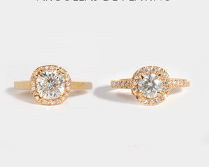 Es una de las preguntas más comunes al comparar anillos de compromiso: ¿cómo es posible que dos piezas que se ven tan similares tengan precios tan diferentes? La respuesta está en el corazón de cada joya: una tiene moissanita y la otra un diamante natural.