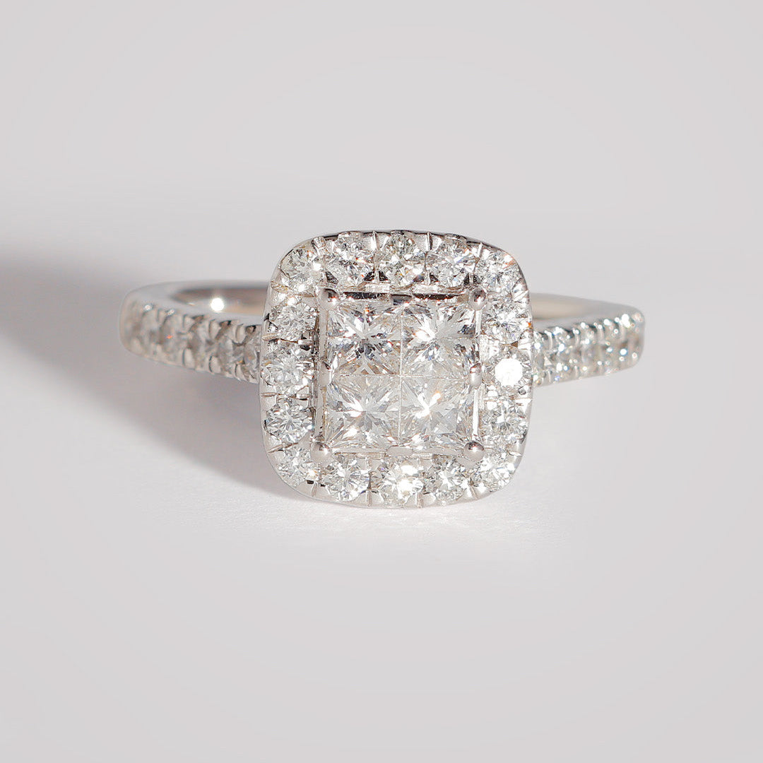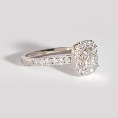 Anillo de Compromiso en oro blanco de 14k con diamantes multistone de 100 ct color G-H, claridad VS-SI