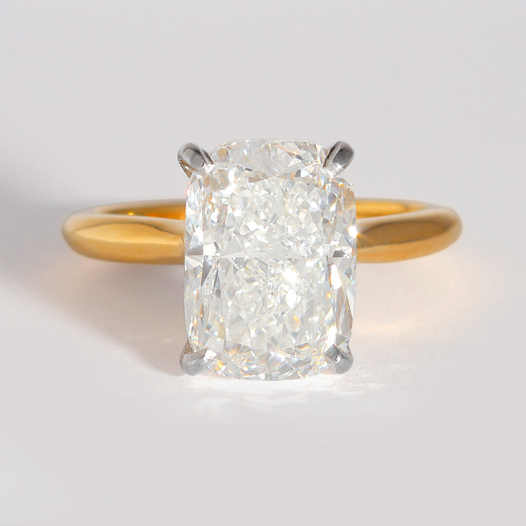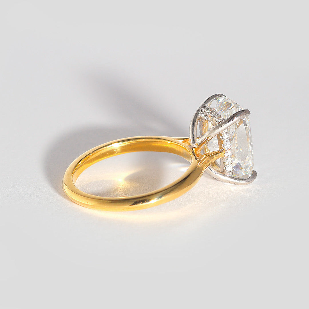 Anillo de Compromiso en oro blanco y amarillo de 14k con diamante de laboratorio central de 5.05 ct color D, claridad VS1 (IGI) y 0.20 ct de acentos de diamantes