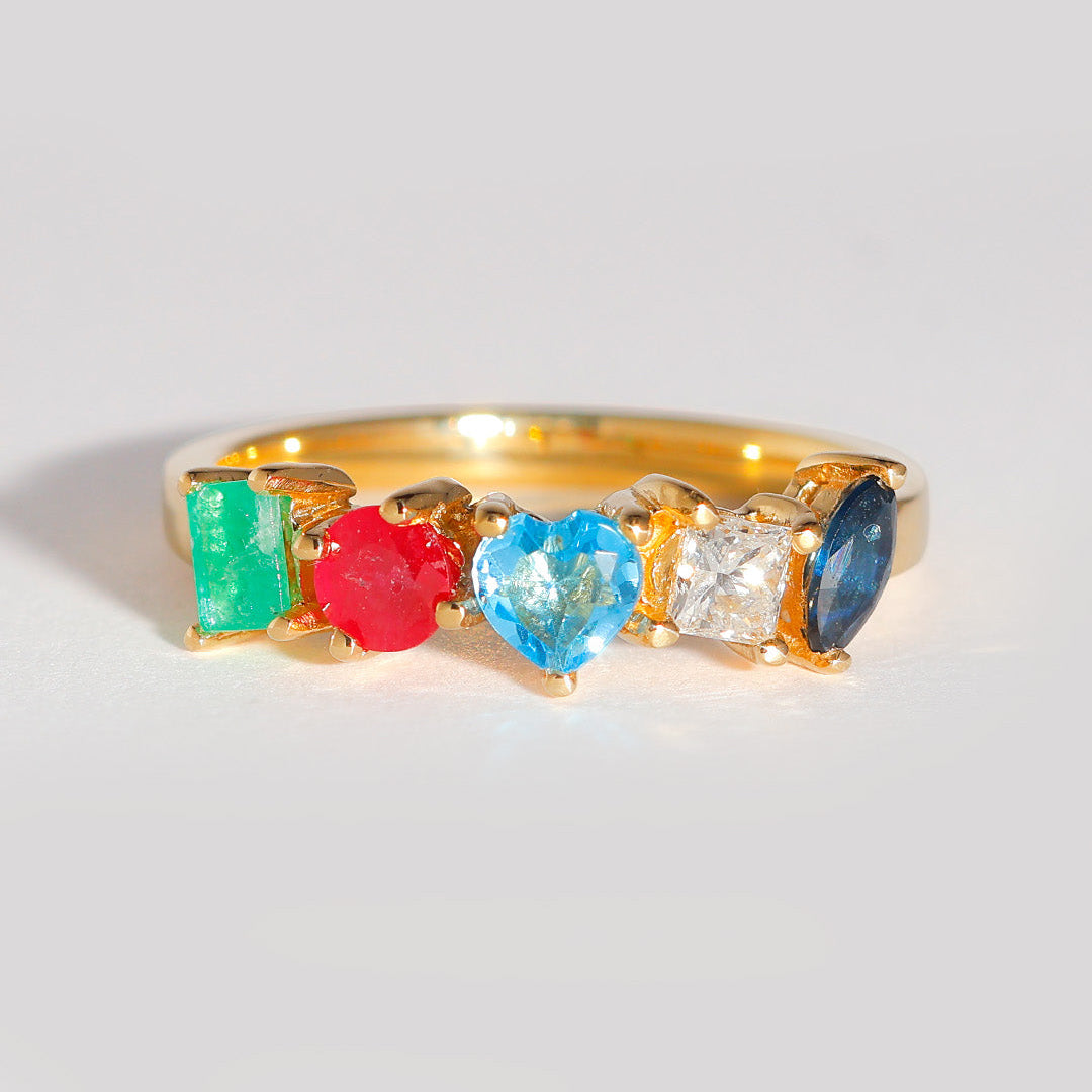 Churumbela en oro amarillo de 14k, gemas rainbow