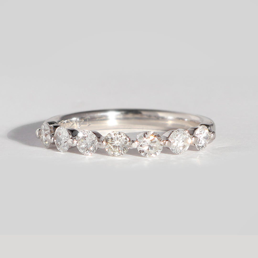 Churumbela Capri, fabricado en oro blanco de 14 k con diamantes en corte brillante con un quilataje total de 0.49 ct. tw., con un color grado G-H y una claridad de VS-SI.