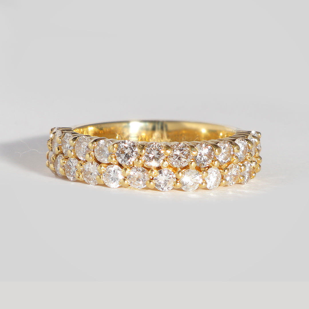 Churumbela Danae, fabricado en oro amarillo de 14 k con diamantes en corte brillante con un quilataje total de 1.44 ct. tw., con un color grado G-H y una claridad de VS-SI.