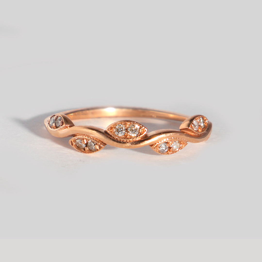 Churumbela Frida, fabricado en oro rosa de 14 k con diamantes en corte brillante con un quilataje total de 0.10 ct. tw., con un color grado H-J y una claridad de I.