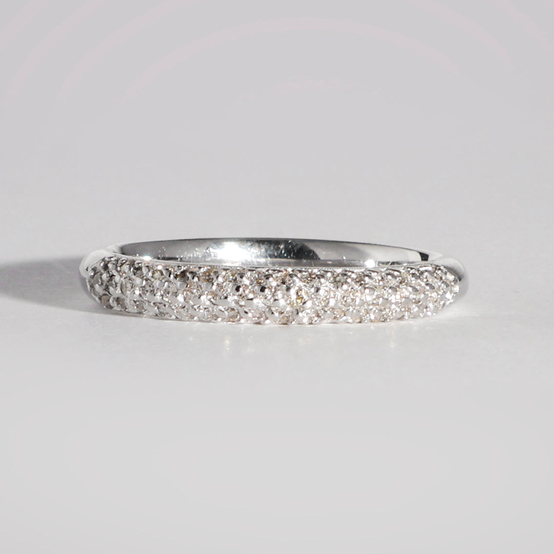 Churumbela Begonia, fabricado en oro blanco de 14 k con diamantes en corte brillante con un quilataje total de 0.25 ct. tw., con un color grado H-I y una claridad de SI-I.