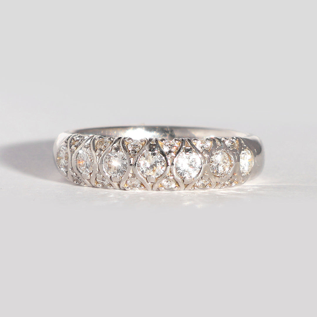 Churumbela Alessia, fabricado en oro blanco de 14k con diamantes en corte brillante con un quilataje total de 0.47 ct. con un color grado (G-H) y una claridad de (VS-SI).