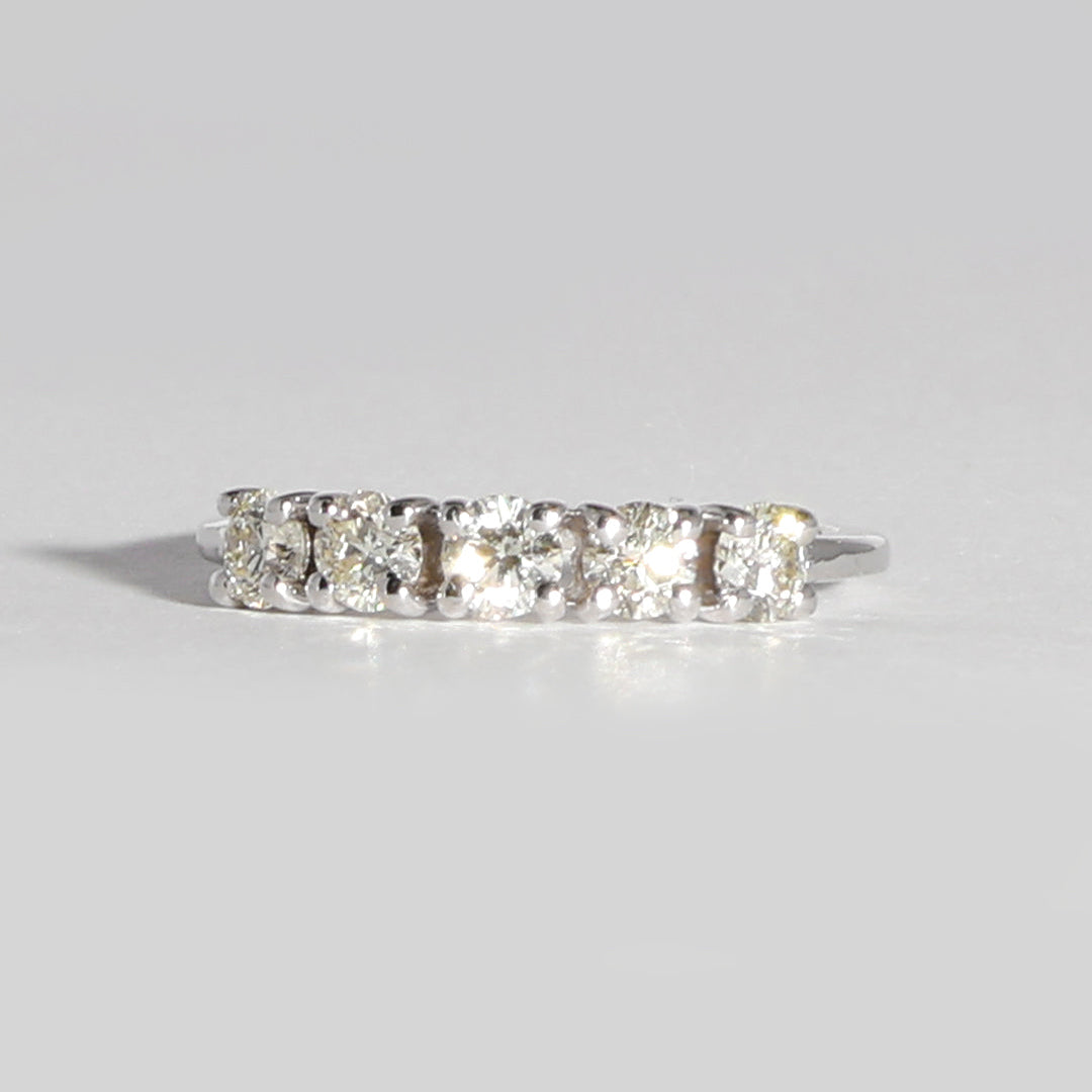 Churumbela Alba, fabricado en oro blanco de 14 k con diamantes en corte brillante con un quilataje total de 0.70 ct. tw., con un color grado G-I y una claridad de VS-SI.