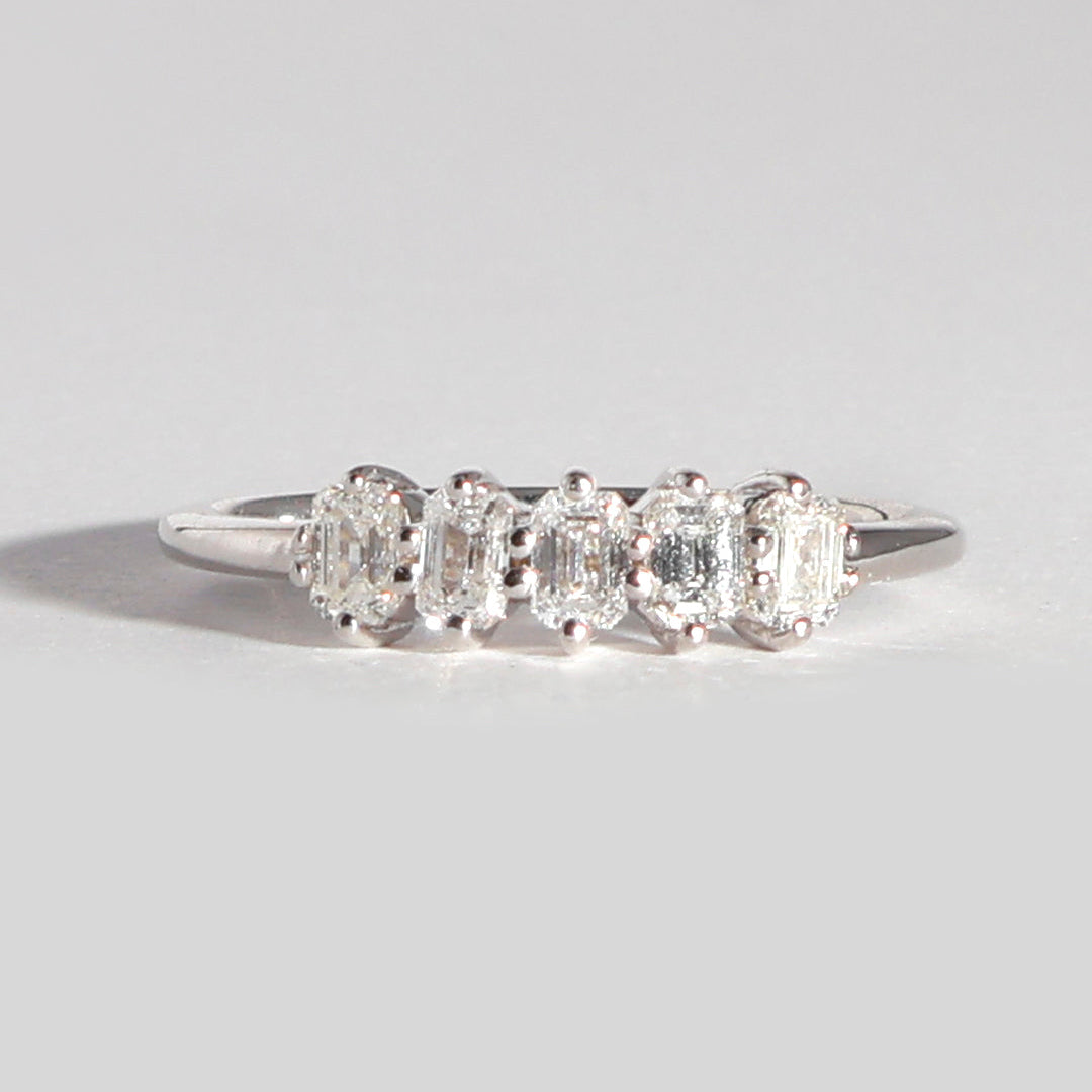 Churumbela Baguette, fabricado en oro blanco de 14 k con diamantes en corte baguette con un quilataje total de 0.58 ct. tw., con un color grado G y una claridad de VS.