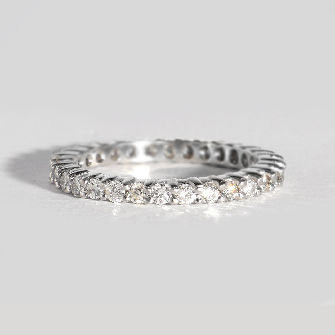 Churumbela Danae Eternity fabricado en oro blanco de 14 k con diamantes en corte brillante con un quilataje total de 0.90 ct. tw., con un color grado G-H y una claridad de VS-SI.