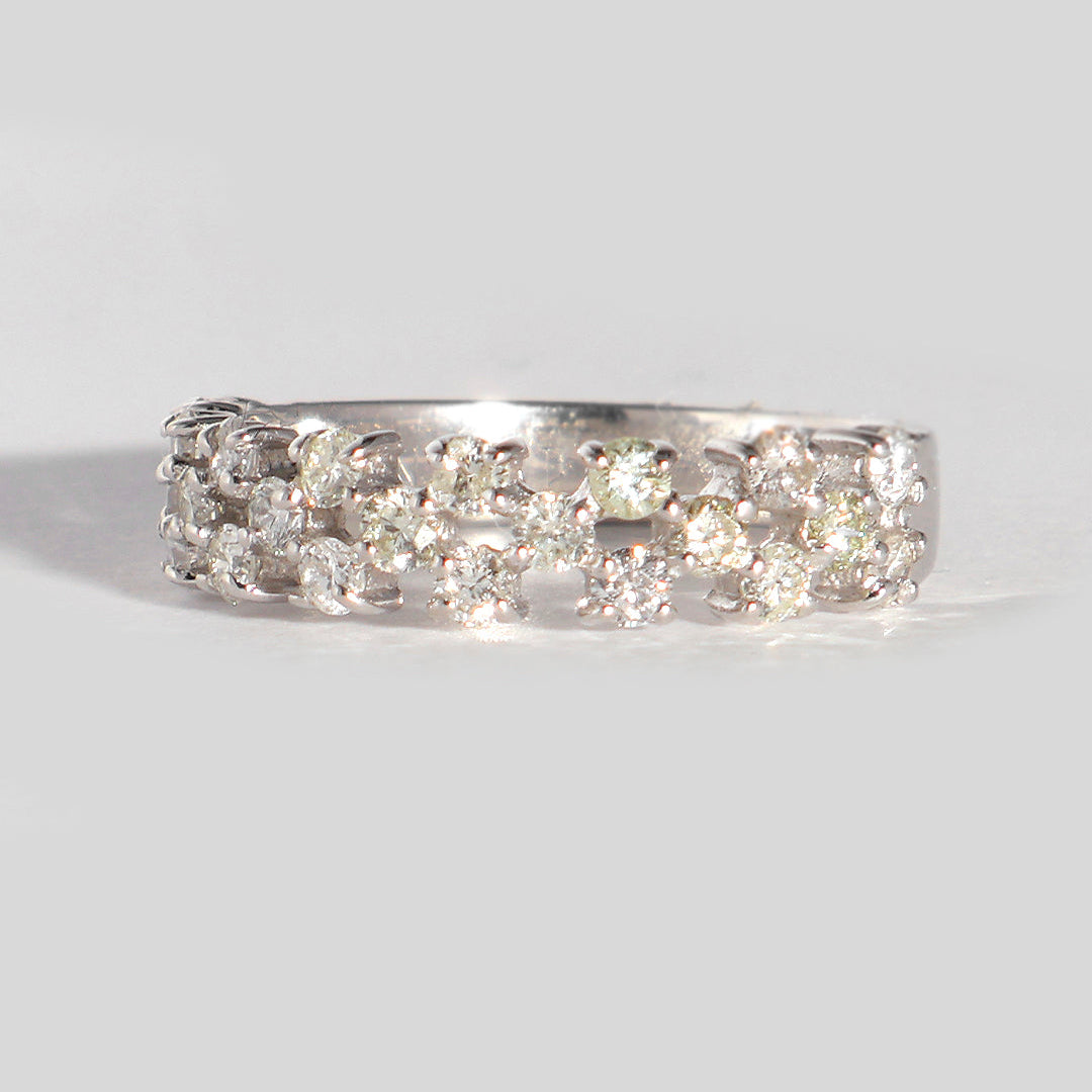 Churumbela fabricada en oro blanco de 14K con diamantes en corte brillante con un quilataje total de 0.80 ct. tw., con un grado color H-J, un grado de claridad VS.