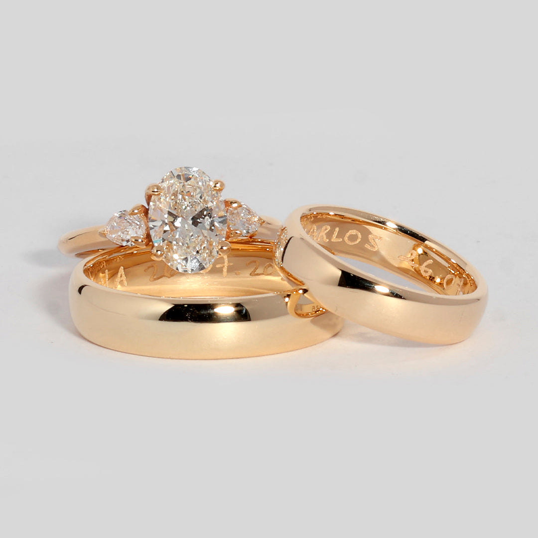 Argollas de 5 y 5 MM, Anillo con 1.5 ct central y 0.30 ct tw en oro sólido y con confort fit