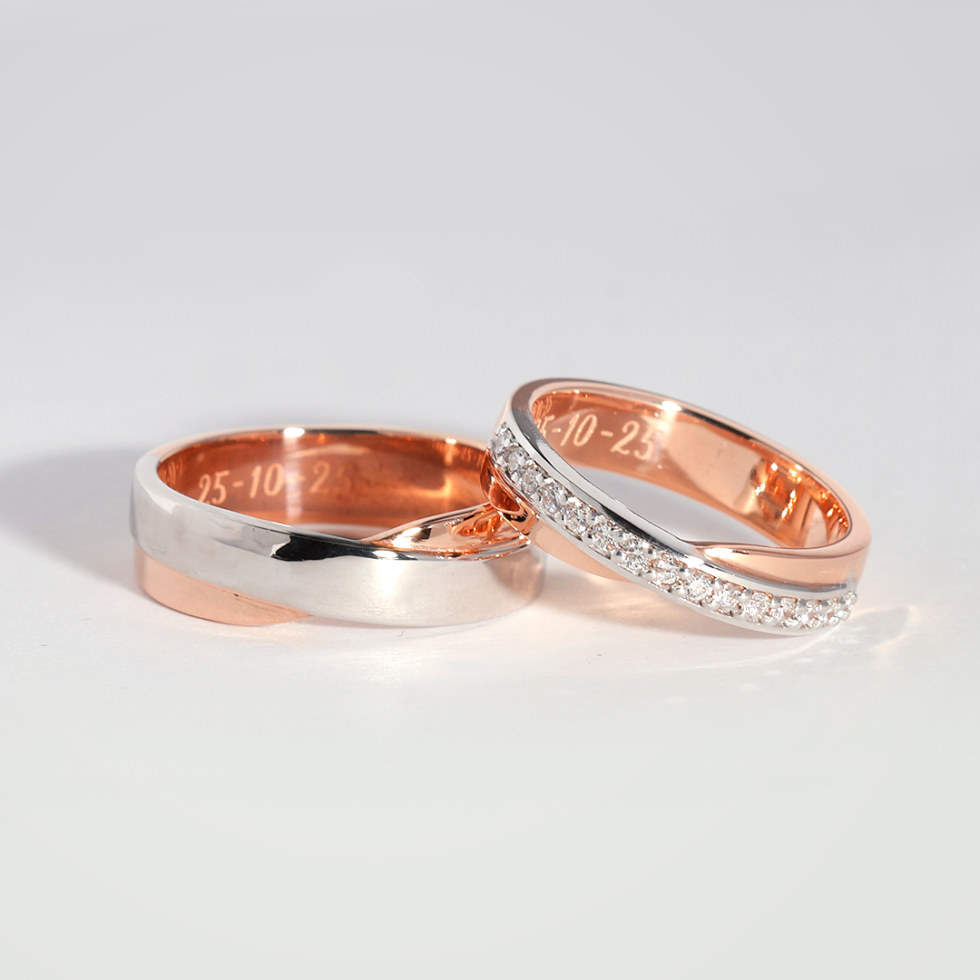 Argollas de Matrimonio modelo Lille 6 y 4.5 mm en oro blanco y rosa de 10k con 0.32 ct de diamantes