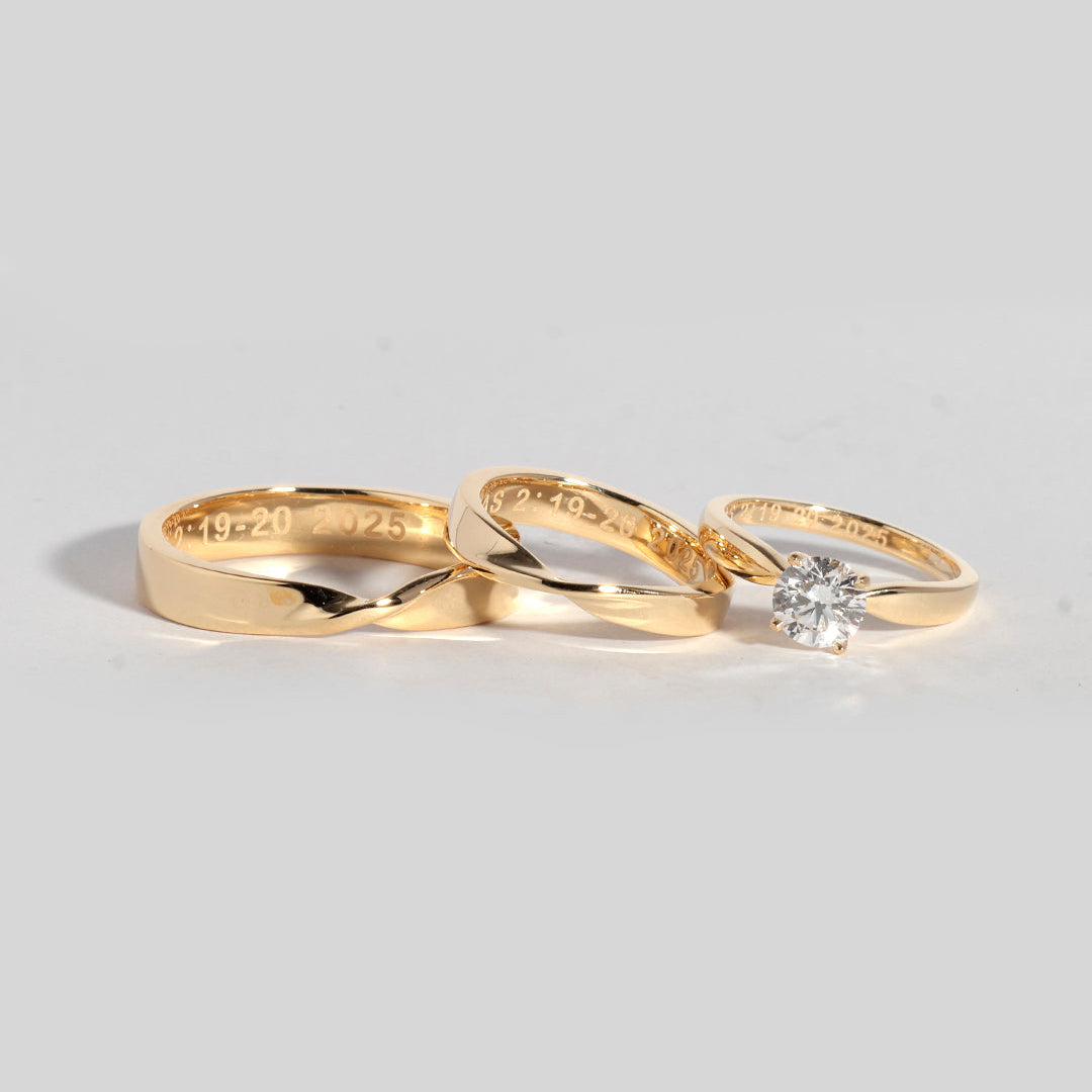 Argolla de 4 mm y 3 mm con solitario de 0.80 ct en oro sólido y con confort fit