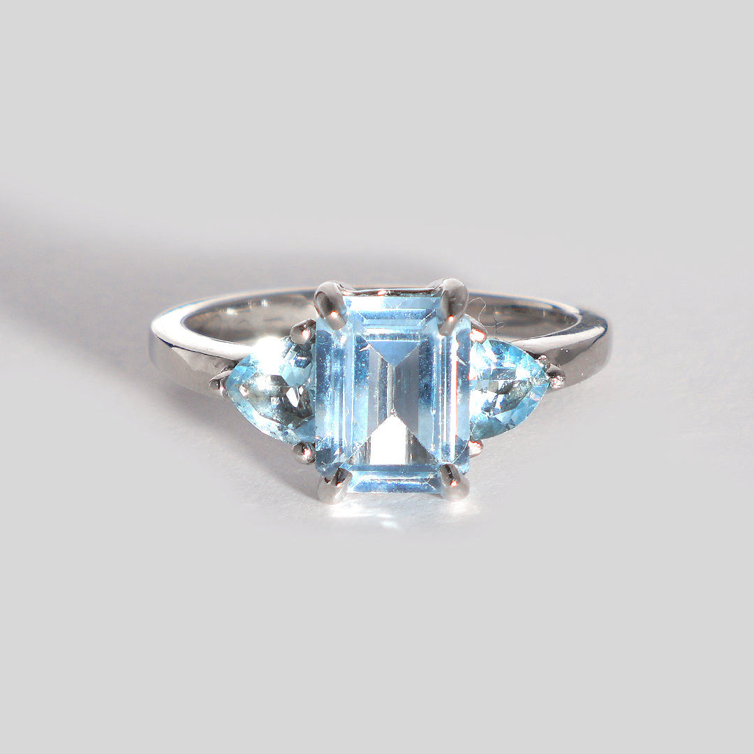 Anillo 3 stone en oro blanco de 14k con Topacios naturales 2.65 ct tw