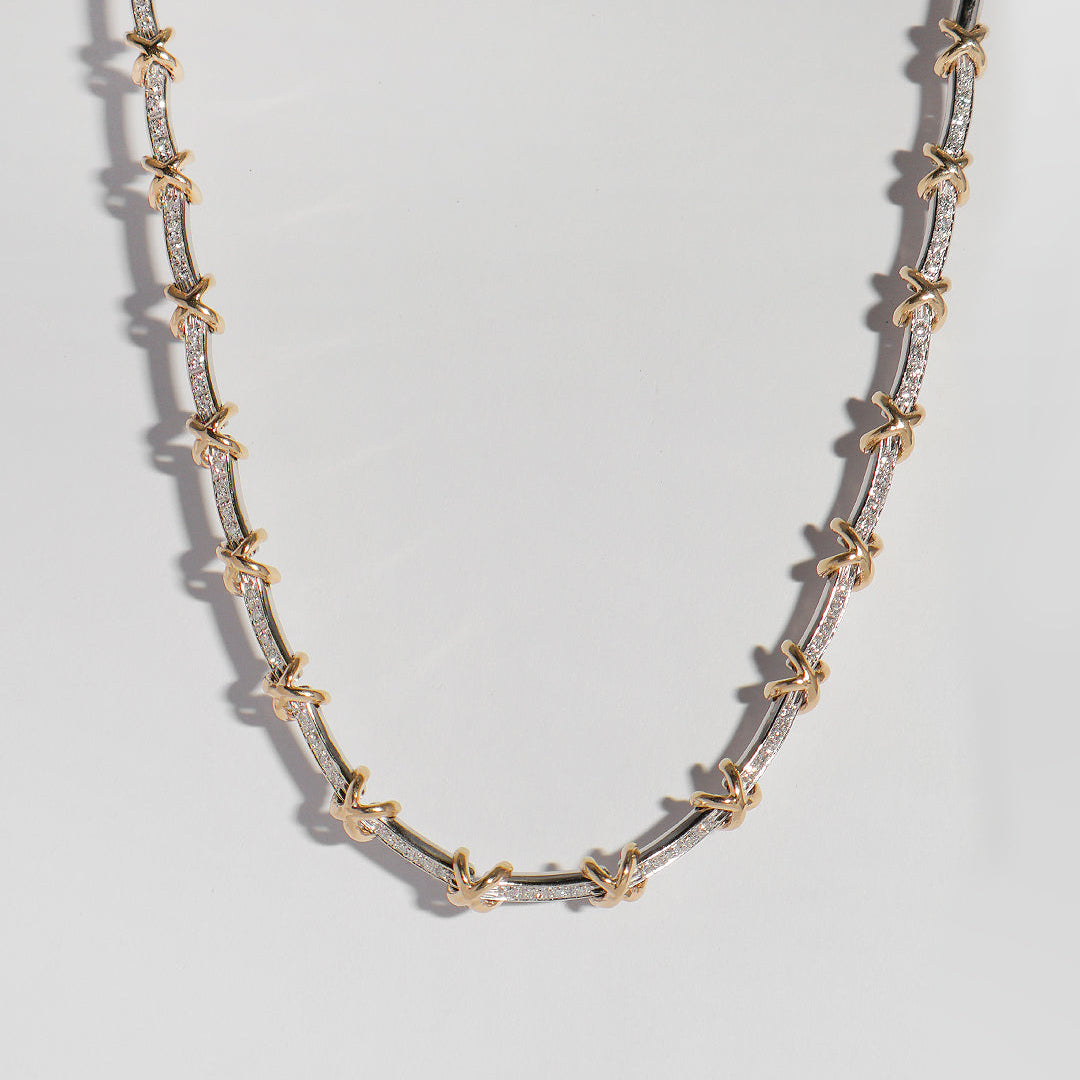 Gargantilla fabricada en oro blanco y amarillo de 14k con 1 quilate de diamantes naturales