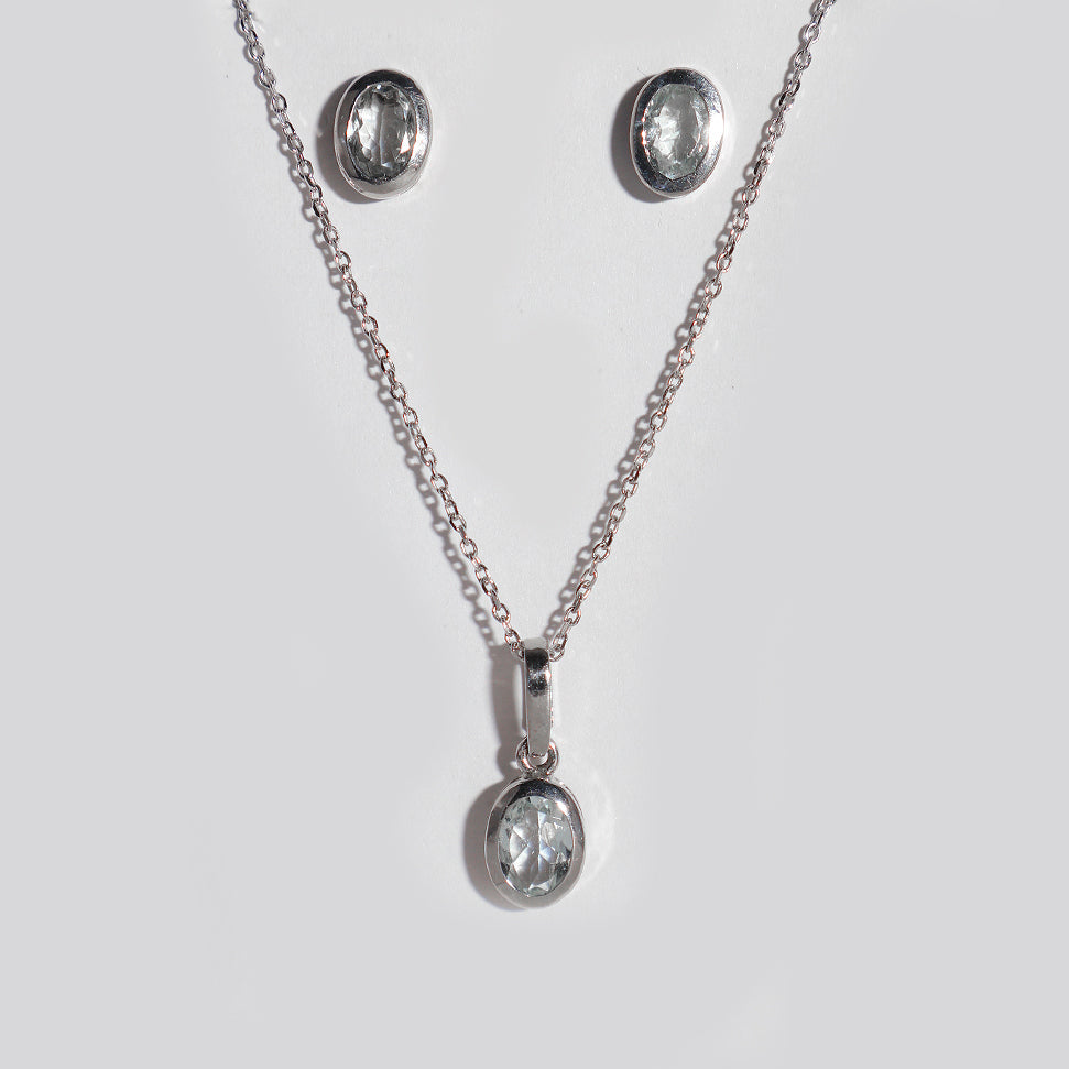 Aretes, anillo y colgante fabricados en oro blanco de 14k con aguamarinas